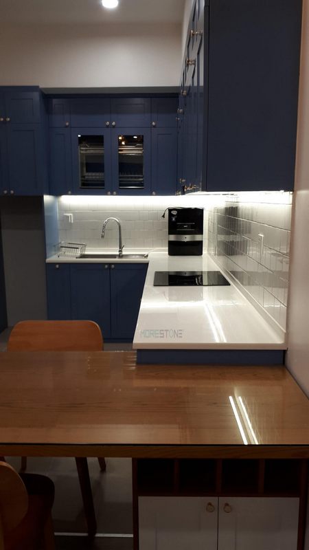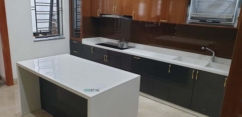 Mẫu đá ốp bếp Himacs trắng tinh tế làm cho bếp nhà phố, chung cư, biệt thự trở nên sang trọng hơn.