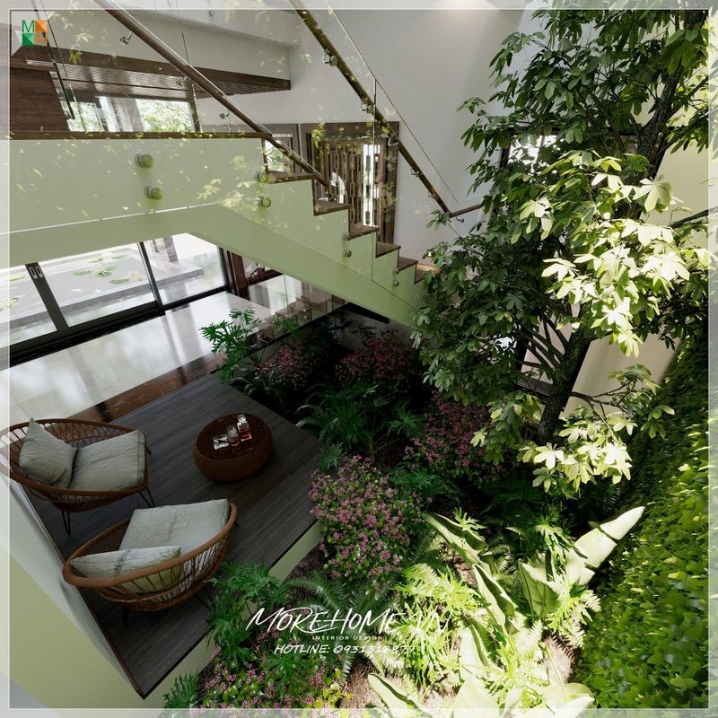 Việc thi công nội thất cho nhà phố, biệt thự hiện đại có không gian xanh mát của cây cảnh và hoa lá là nơi lý tưởng để thư giãn, nói chuyện với người thân, bạn bè, nhâm nhi ly trà và tận hưởng bầu không khí trong lành mát mẻ của cây cảnh, hoa lá.