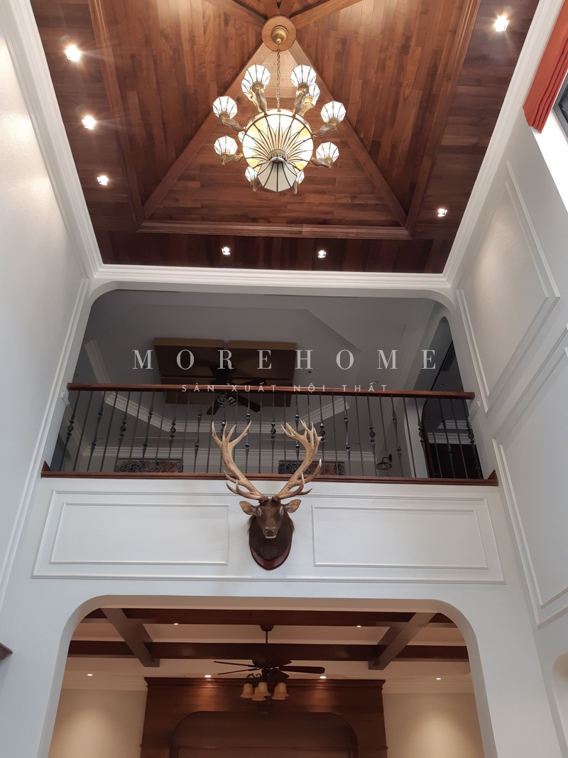 Thi công kệ tủ gỗ óc chó tân cổ điển với những chi tiết chạm khắc tinh xảo, sắc nét đem tới giá trị sử dụng và thẩm mỹ cao cho không gian sống cũng như cho chủ nhân