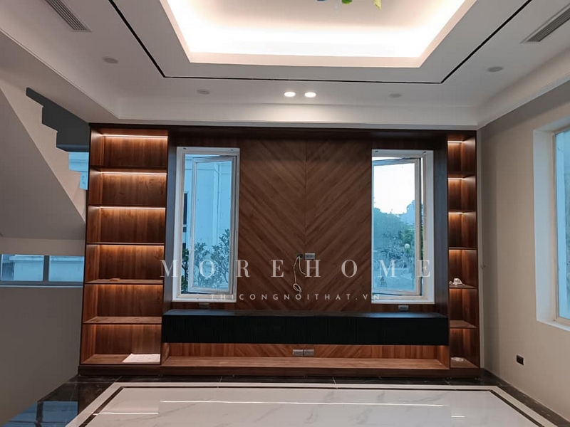 Việc thi công một kệ tivi treo tường có tính tiện nghi, sang trọng, không gian gọn gàng và thẩm mỹ cao.
