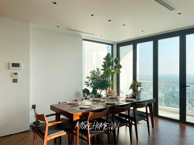 Thêm vào đó, ánh sáng tự nhiên là một yếu tố không thể bỏ qua trong thiết kế nội thất phòng ăn. Tận dụng cửa sổ lớn hay các khung kính để đưa ánh sáng vào không gian sẽ giúp cho căn phòng trở nên tươi mới và sống động hơn. Ngoài ra, việc kết hợp đèn trang trí với các loại đèn chiếu sáng sẽ tạo ra những điểm nhấn thú vị, khiến bữa ăn trở thành trải nghiệm đáng nhớ. Đừng quên thêm những yếu tố thiên nhiên như cây xanh hay hoa tươi để mang lại sức sống và sự thanh thoát cho căn phòng.